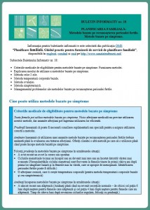 ggg BULETIN INFORMATIV nr. 18 PLANIFICAREA FAMILIALĂ: Metodele bazate pe recunoașterea perioadei fertile. Metode bazate pe simptome ggg