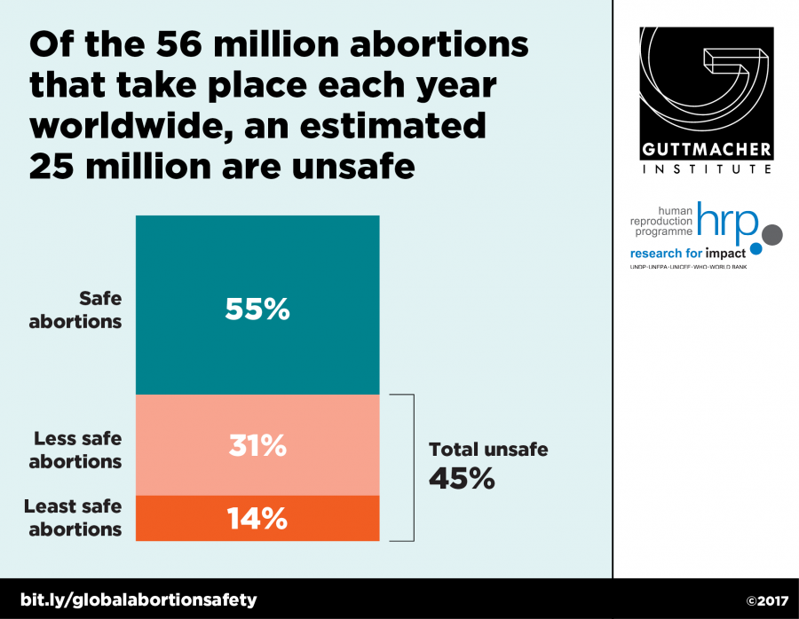 Mai bine de 25 de milioane de avorturi nesigure au loc în fiecare an intre 2010 și 2014, arată un nou studiu realizat de Organizația Mondială a SĂnătății în colaborare cu Institutul american Guttmacher, o organizație nonprofit specializată în drepturile reproductive.