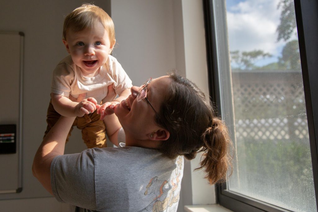 «Тони Иви держит на руках своего годовалого ребенка Финна в региональном медицинском центре Liberty в Хайнсвилле. Иви поступила в больницу с высоким кровяным давлением и риском сердечных осложнений в течение одной недели после родов.» Автор фото: Софи Гратас/Новости GPB