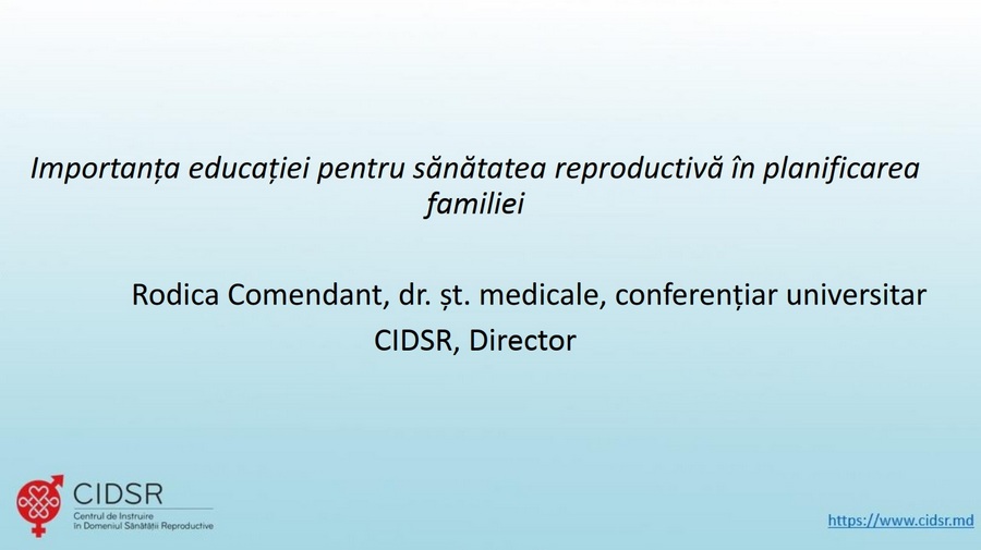 13 мая 2021 года, по случаю Международного дня семьи (15 мая), Департамент культуры, молодежи и спорта Кишинева организовал вебинар с профессионалами, которые работают с подростком и молодежью. Темой вебинара была «Важность просвещения по вопросам репродуктивного здоровья в планировании семьи», и его провела директор чающего Центра по Репродуктивному Здоровью, доктор Родика Комендант.